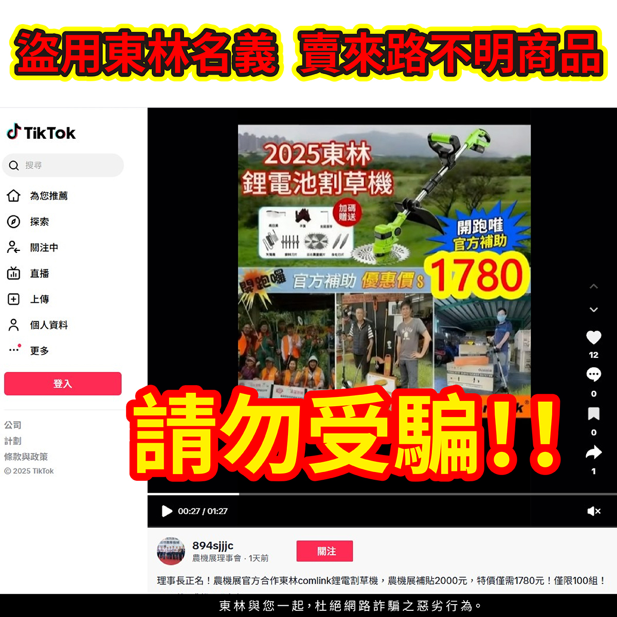 【防詐騙公告】 近日發現有不肖業者在 TikTok
